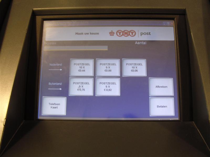 Sinds 1 juli 2009 verstrekken de kioskautomaten geen zegels meer. Voor de automaten te Arnhem en Heerlerheide was 30 juni de laatste dag van gebruik terwijl de automaat te Cuijk, omdat de rol zegelpapier op was, al enkele dagen eerder geen zegels meer afgaf. Op 1 juli 2009 werden de automaten van nieuwe software voorzien. Na op 'Start' te hebben gedrukt kon je nu nog maar kiezen uit de mogelijkheden: 'Telefoon Kaart' en 'Geld Opnemen' (50 en 51). Op 16 september 2009 waren de automaten nog wel voorzien de oranje TNT-Post-unit, compleet met zegelprinter (52), en stond op het bord boven de automaat de mogelijkheid van 'Postzegels kopen' nog aangegeven (53).