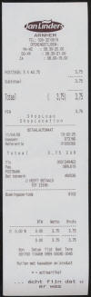 Door de automaat in Arnhem kan ook een niet-betaald-bon worden afgegeven. De openingstijden op de bonnen uit Cuijk en Heerlen (Heerlerheide) waren keurig uitgelijnd en aan het eind voorzien van de mededeling: inclusief verpakkingsbelasting (verg. 32 en 33 met 28). Op de bon uit Cuijk ontbreekt boven de betaalinformatie de woorden: Shoplogo en Shoplocation terwijl bij de bon uit Heerlen het bankrekeningnummer gedeeltelijk vervangen door xxxxxxxxxx (vergelijk 32 en 33 met 28).